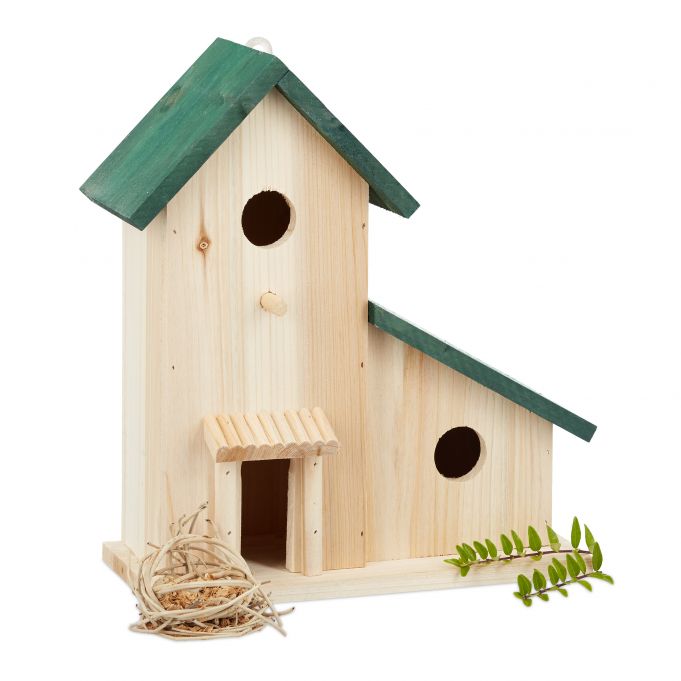 Budka l臋gowa dla ptak贸w z zielonymi daszkami Nasz luksusowy domek z drewna z pewno艣ci膮 spodoba si臋 Twoim 膰wierkaj膮cym go艣ciom. Ma艂a budka l臋gowa stanowi 艣wietnie schronienie przed wiatrem i deszczem. Du偶y karmnik z drzwiczkami i dr膮偶kiem do siedzenia to idealne miejsce do odpoczynku dla doros艂ych ptak贸w. Ustaw domek dla ptak贸w na balkonie lub zamocuj go za…