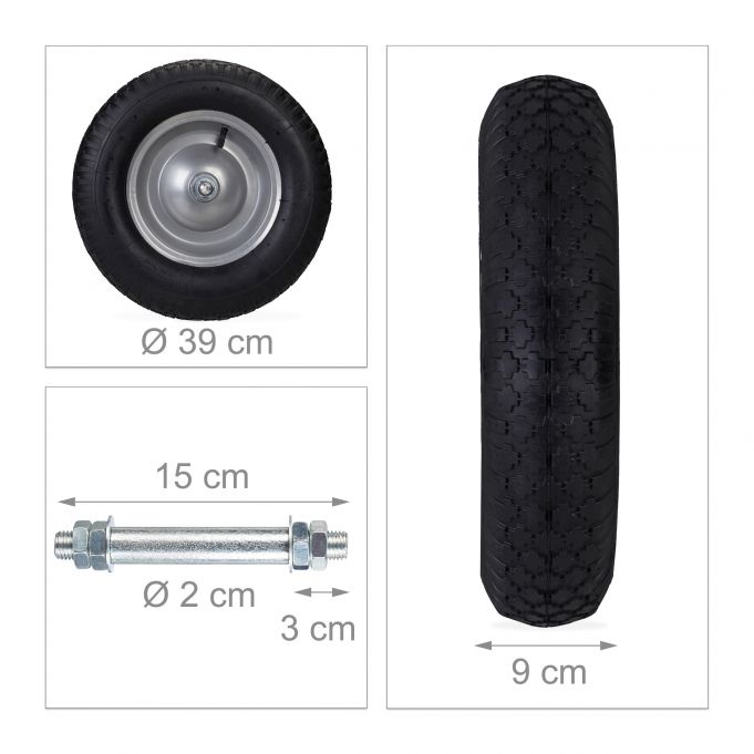 • Gumowe ko艂o do taczki z osi膮 relaxdays