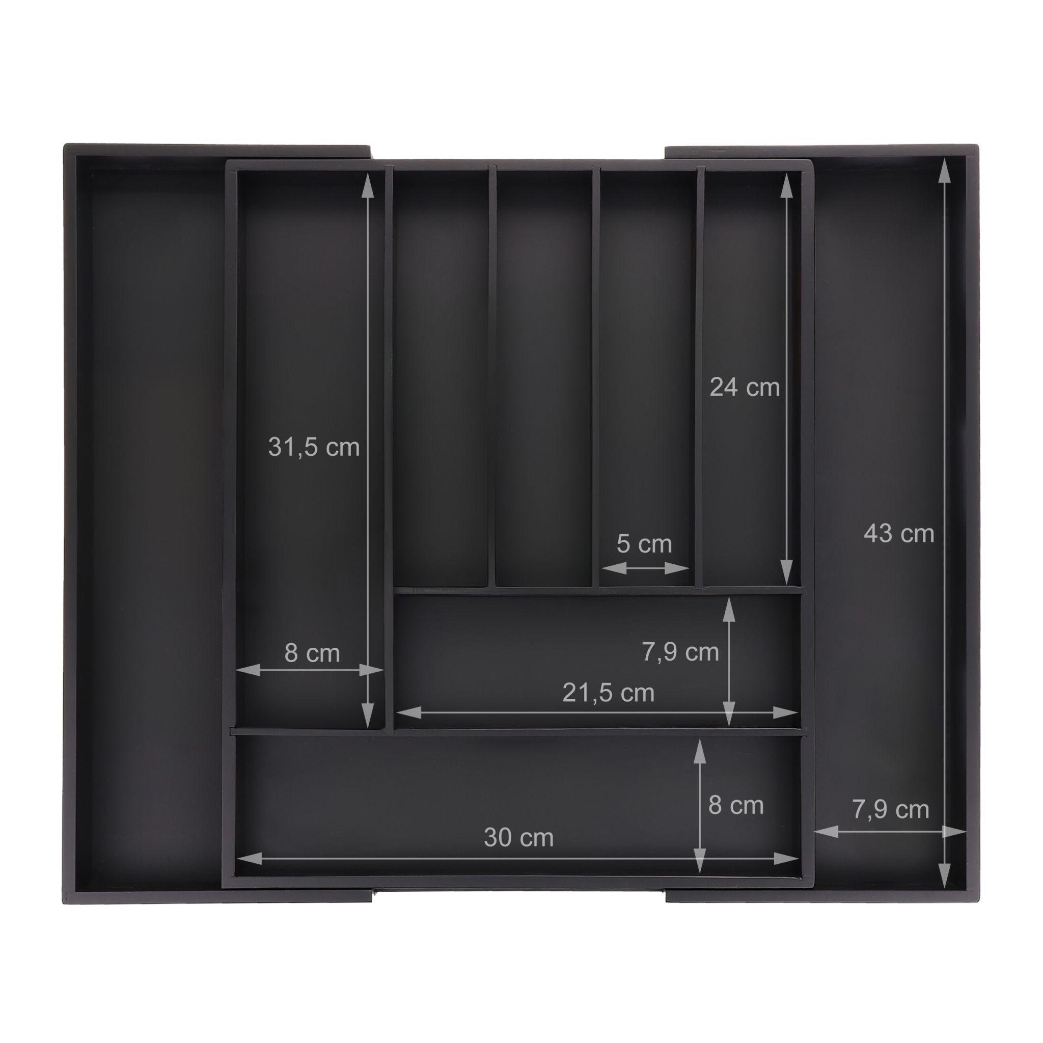 Wskazówki: Zalecamy zmierzyć szufladę przed zakupem, aby się upewnić, że organizer będzie do niej pasował. Należy także dla pewności zmierzyć długość sztućców.