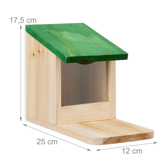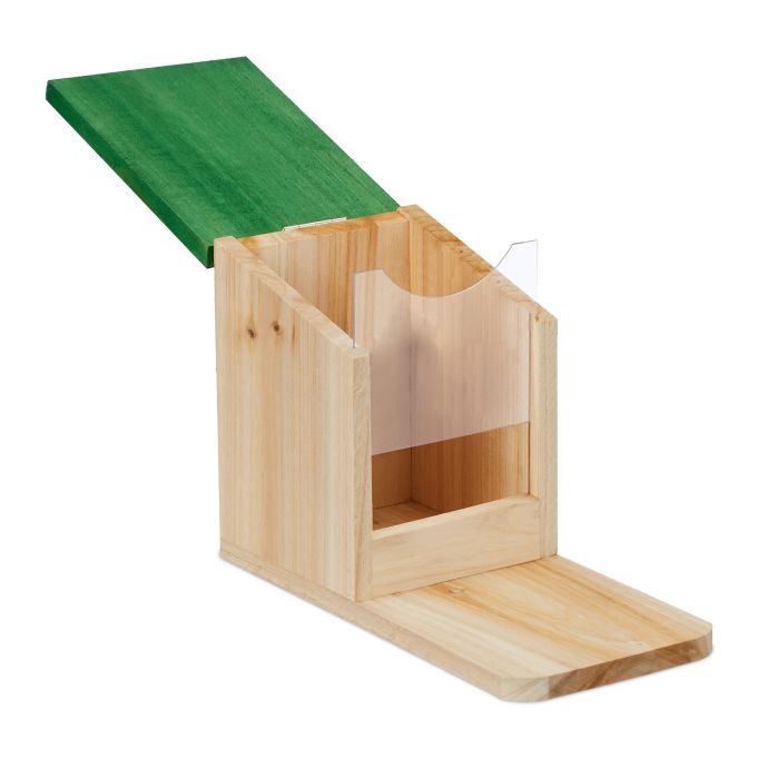 Karmnik dla wiewiórek pomaga gryzoniom w zbieraniu i gromadzeniu zapasów na zimę. Specjalna szyba sprawia, że zwierzęta nie mogą zostać uwięzione lub zranione. Szeroki składany dach zapewnia wiewiórkom łatwy dostęp do pożywienia i chroni je przed innymi zwierzętami i wnikającą wilgocią. Umieść domek dla wiewiórek w ogrodzie, na tarasie lub balkonie i obserwuj małe gryzonie.