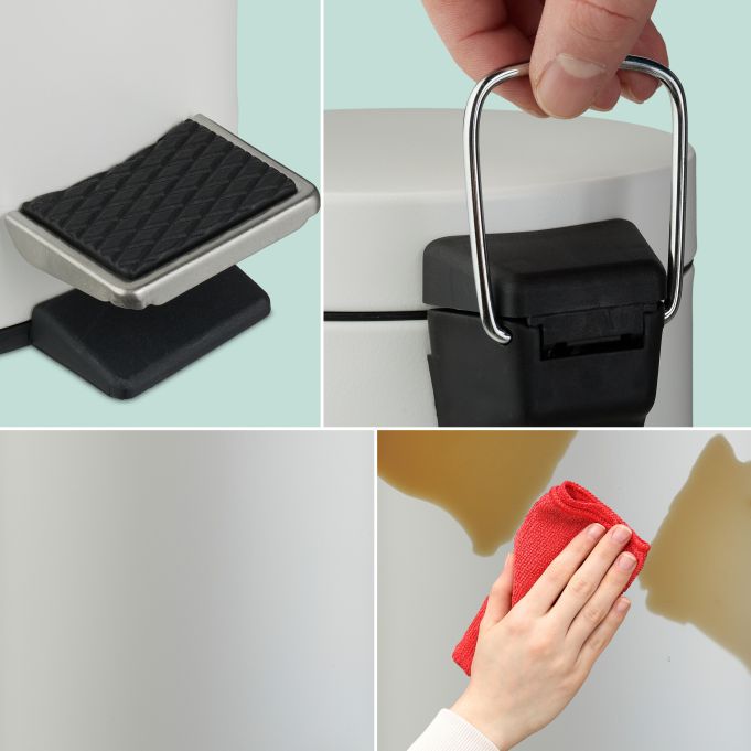 Okrągły kosz z pedałem umożliwia higieniczne i wygodne wyrzucanie odpadów higienicznych w łazience i przy toaletce. Praktyczny pedał umożliwia otwieranie kosza łazienkowego bez użycia rąk. Wyjmowany plastikowy pojemnik z uchwytem ułatwia opróżnianie kosza na śmieci. Nowoczesny metalowy kosz łazienkowy jest atrakcyjny wizualnie dzięki matowemu wykończeniu.