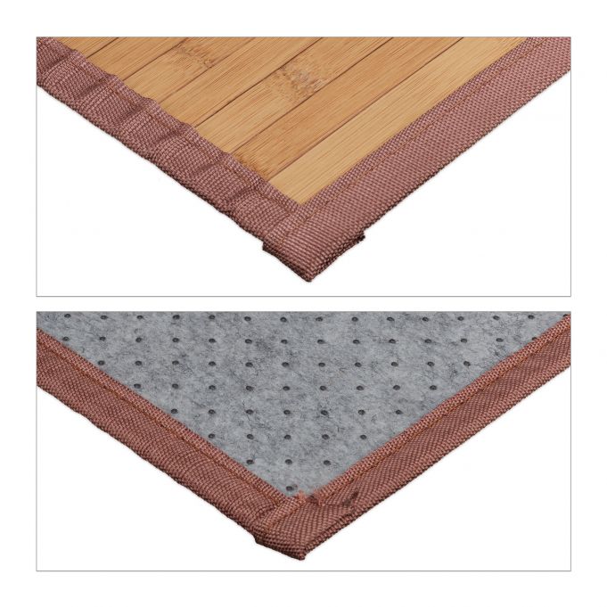 Zazwyczaj zimne i proste wyposażenie łazienki sprawia, że nie sprawia ona przytulnego wrażenia. Nasza mata z włókna bambusowego doda odrobinę ciepła każdej łazience! Oprócz estetycznego i naturalnego designu ten dywanik łazienkowy jest także odporny na wilgoć i wyjątkowo trwały. Antypoślizgowy spód chodnika zapobiega jego ślizganiu się po kafelkach. Matę z bambusa można w bardzo łatwy sposób zwinąć i zawiesić na wstążeczce.