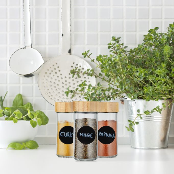- zestaw słoiczków z pokrywką na zioła i przyprawy